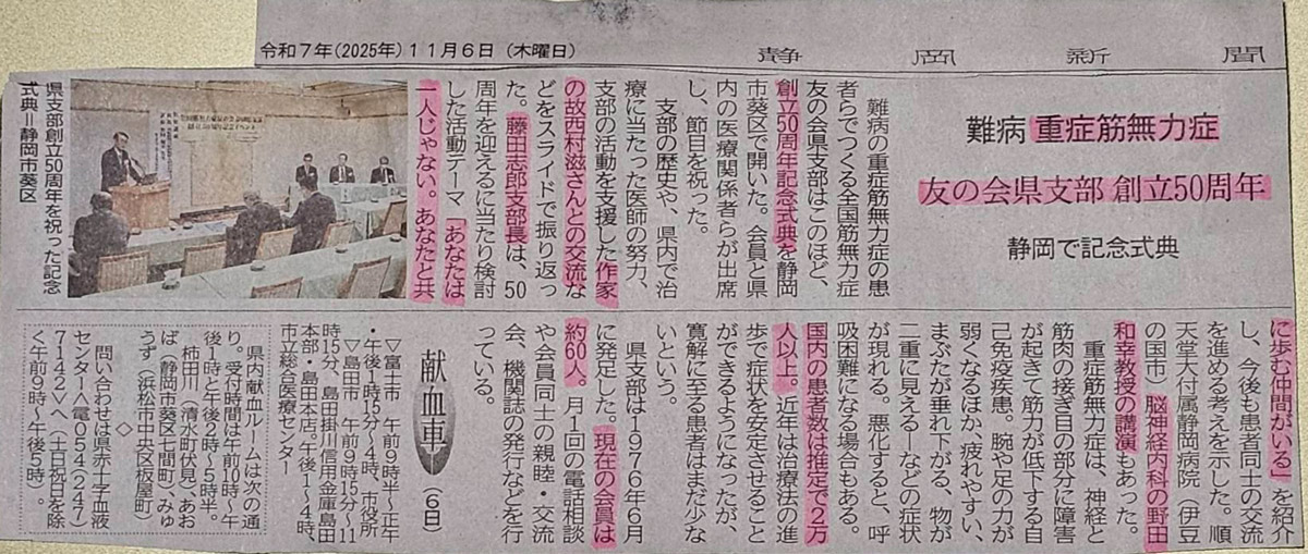 支部創立50周年記念イベントが静岡新聞に掲載されました